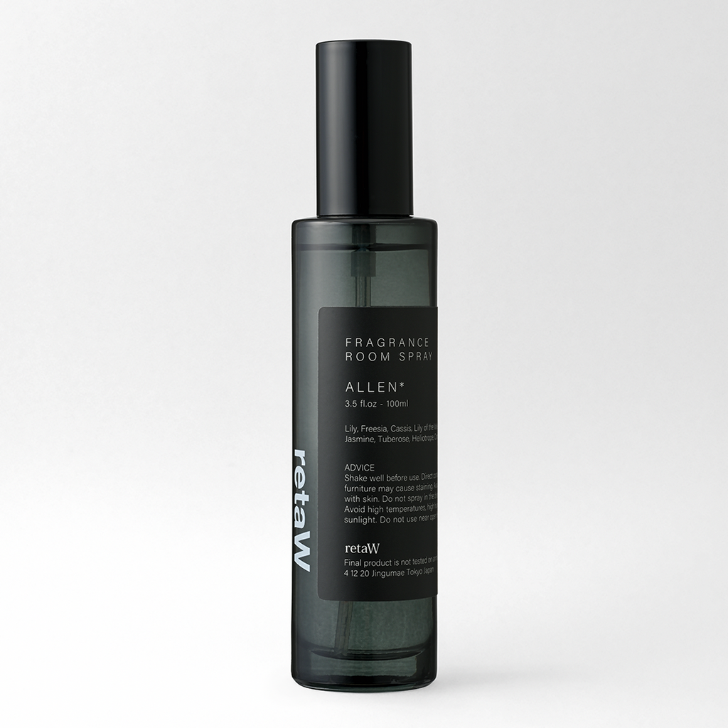 room sprayALLEN* room spray Top: Freesia, Cassis Middle: Lily, Lily of the Valley, Jasmine, Tuberose Last: Heliotrope, Carnation 筒型のパッケージに包まれたグレーのクリアボトルは、大切な方に送る香りのギフトにも。 *ご使用の際は、肌や衣類、家具に触れないようにして下さい。火気、高温での使用、お子様の手の届く場所での保管を避けて下さい。 room sprayALLEN* ALLEN* family 強い意志を感じさせる深みのあるユリの香り。奥行きのある高貴なフレグランスはあなたの心身を癒します。 body shampooALLEN* ¥4,950 add to cart hair shampooALLEN* ¥5,940 add to cart hair conditionerALLEN* ¥6,160 add to cart hair shampooALLEN* ¥8,250 add to cart hair conditionerALLEN* ¥8,800 add to cart hair waterALLEN* ¥2,640 add to cart hand washALLEN* ¥4,180 add to cart liquid perfume miniALLEN* ¥5,500 add to cart liquid perfumeALLEN* ¥11,000 add to cart stick fragranceALLEN* ¥3,300 add to cart fabric sprayALLEN* ¥2,860 add to cart fabric conditionerALLEN* ¥2,860 add to cart candleALLEN* ¥7,700 add to cart candleALLEN* ¥7,700 add to cart candleALLEN* ¥8,250 add to cart room oilALLEN* ¥1,760 add to cart desktop 25mlALLEN* ¥3,850 add to cart standard 300mlALLEN* ¥12,100 add to cart floor 900mlALLEN* ¥29,700 add to cart room tagALLEN* ¥2,200 add to cart car tagALLEN* ¥1,760 add to cart Hoodie ALLEN* / WHITE ¥12,100 add to cart room spray collection room sprayBARNEY* ¥4,620 add to cart room sprayEVELYN* ¥5,060 add to cart room sprayFRGMT* ¥5,060 add to cart room sprayHARAJUKU* ¥5,060 add to cart room sprayLOEB* ¥5,060 add to cart room sprayLYN* ¥4,620 add to cart room sprayNATURAL MYSTIC* ¥4,620 add to cart