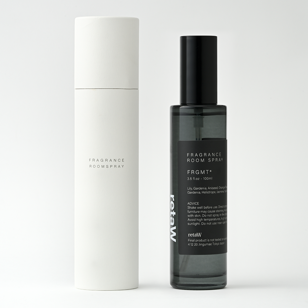 room sprayFRGMT* room spray Top: Lilac,Gardenia,Aniseed Middle: Jasmine,Orange Flower,Gardenia Last: Heliotrope,Vanilla,Patchouli 筒型のパッケージに包まれたグレーのクリアボトルは、大切な方に送る香りのギフトにも。 *ご使用の際は、肌や衣類、家具に触れないようにして下さい。火気、高温での使用、お子様の手の届く場所での保管を避けて下さい。 room sprayFRGMT* FRGMT* family パチュリとバニラの深みのある香りをベースに、ユリとカシスのしっとりとした柔らかさを加えたブレンド。ラストに残るわずかな苦味がミステリアスな表情を与える調香。*Fragment Design のために作られた香り。 liquid perfume miniFRGMT* ¥5,500 add to cart liquid perfumeFRGMT* ¥11,000 add to cart fabric sprayFRGMT* ¥2,860 add to cart candleFRGMT* ¥7,700 add to cart desktop 25mlFRGMT* ¥3,850 add to cart standard 300mlFRGMT* ¥12,100 add to cart car tagFRGMT* ¥1,760 add to cart room spray collection room sprayALLEN* ¥5,060 add to cart room sprayBARNEY* ¥4,620 add to cart room sprayEVELYN* ¥5,060 add to cart room sprayHARAJUKU* ¥5,060 add to cart room sprayLOEB* ¥5,060 add to cart room sprayLYN* ¥4,620 add to cart room sprayNATURAL MYSTIC* ¥4,620 add to cart